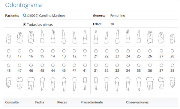 Esta herramienta es un perfecto aliado para los dentistas ya que consiste en un esquema gráfico en donde están representadas todas las piezas dentales, así como su anatomía. El odontograma dental es necesario dentro del historial clínico del paciente, pues en este gráfico se registra la información acerca de los procedimientos que se han realizado, las afecciones que sufren los dientes, entre otros datos que son importantes para un correcto seguimiento.