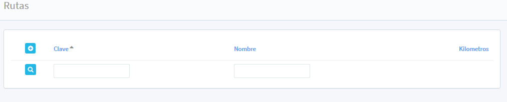 Una vez en la pantalla principal de Ruta, se puede realizar la búsqueda mediante el filtro; Clave (con la clave asignada al momento de realizar el registro de la ruta), Nombre (el nombre con el cual se identificó la ruta) y muestra los Kilómetros.