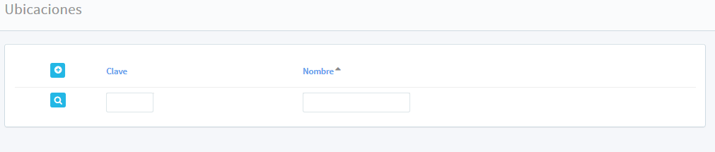 Una vez en la pantalla principal se puede realizar la consulta de las ubicaciones, por medio del filtro de búsqueda Clave (ingresando la clave asignada en la pantalla anterior), Nombre (nombre asignado a la imagen del catálogo de ubicación)