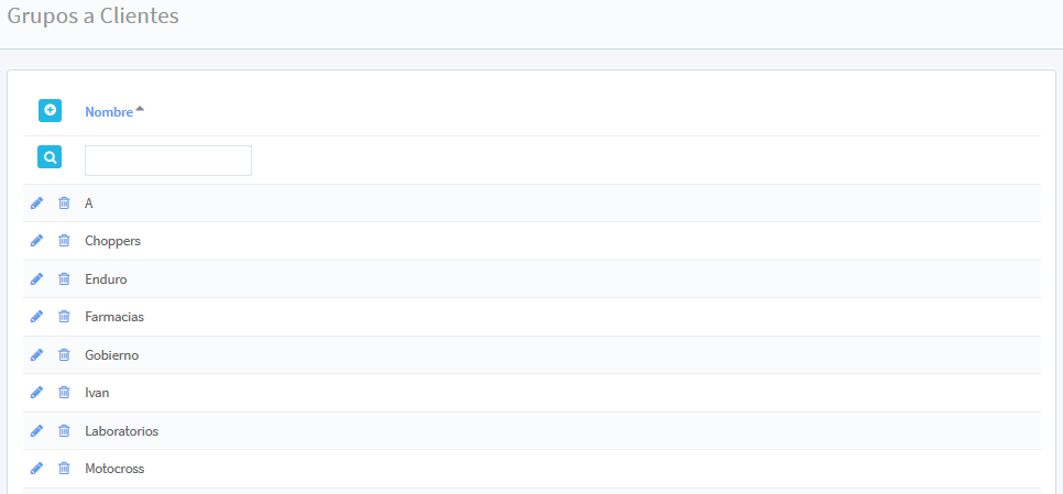 En este módulo se pueden crear grupos de catálogos para los clientes. En la pantalla principal muestra el nombre del grupo.