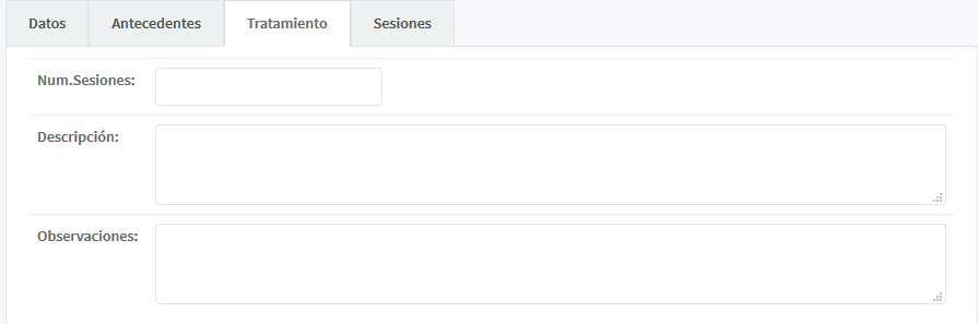 el cual nos envía a una nueva pantalla para modificar los datos de los tratamientos en el expediente.