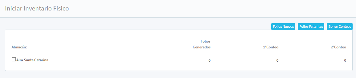 En este módulo se realiza el conteo del inventario físico generando la imagen de Almacén seleccionado, los folios generados de los almacenes registrados en el sistema.