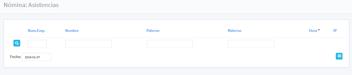 Para el departamento de RH facilitara la consulta de la asistencia en este módulo cuando se desee generar la nómina, los datos a ingresar para la consulta son; Núm. Empleado (asignado al momento del registro de nuevo empleado), Nombre (del empleado a consultar), Paterno, Materno y Fecha (en la que se realiza la consulta de la asistencia hasta la fecha de la nómina).