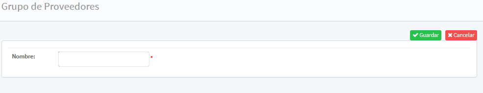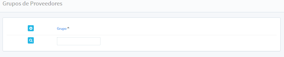 En este módulo se pueden crear grupos de proveedores. En la pantalla principal muestra el nombre del grupo.