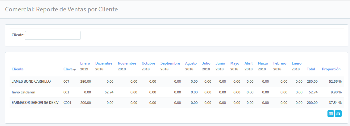 En la información desplegada nos mostrara: Cliente, clave del cliente, los meses totales, y el total de las ventas al final del periodo.